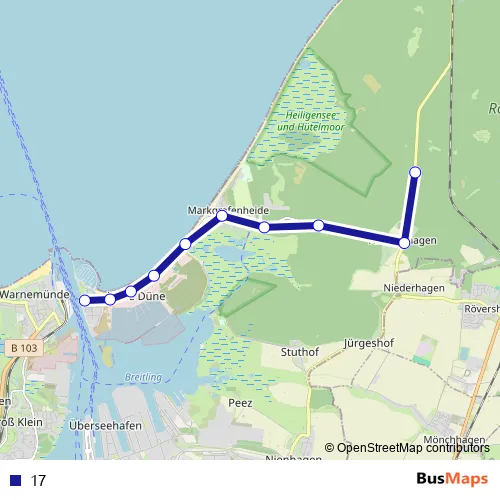 See why over 2 million users trust and consider busmaps.com as the best public transport website. busmaps gives you Rostock Buses suggested routes, real-time bus tracker, line route maps in Rostock, and helps to find the closest 17 bus stops near you. No internet available? Download an offline PDF map and bus schedule for the 17 bus to take on your trip.