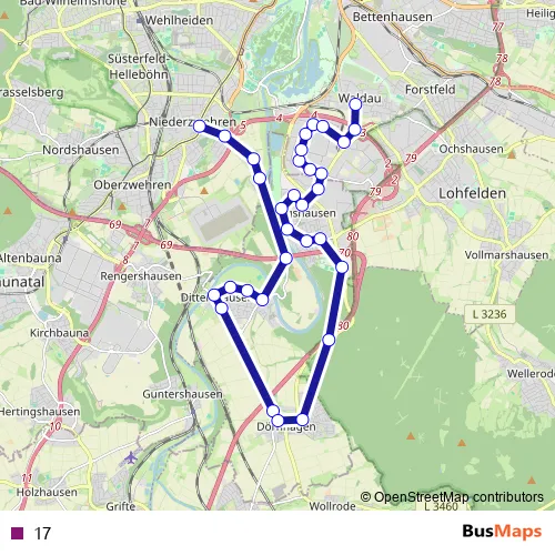 See why over 2 million users trust and consider busmaps.com as the best public transport website. busmaps gives you Kassel Buses suggested routes, real-time bus tracker, line route maps in Kassel, and helps to find the closest 17 bus stops near you. No internet available? Download an offline PDF map and bus schedule for the 17 bus to take on your trip.