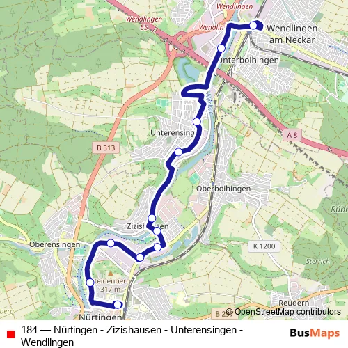 Click here to view the nearest 184 - Nürtingen - Zizishausen - Unterensingen - Wendlingen bus stop.