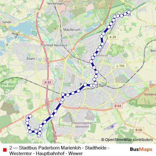 See why over 2 million users trust and consider busmaps.com as the best public transport website. busmaps gives you Paderborn Buses suggested routes, real-time bus tracker, line route maps in Paderborn, and helps to find the closest 2 bus stops near you. No internet available? Download an offline PDF map and bus schedule for the 2 bus to take on your trip.