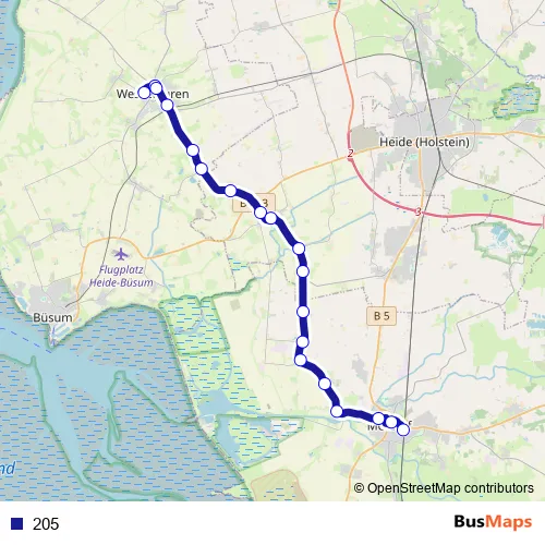 Bus 205 in Heide: Stops & Timetable