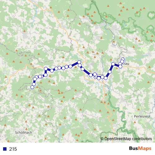 The first stop of the 215 bus route is Grafenau and the last stop is Langfurth, Hst. Lkr.Grenze. 215 is operational during täglich.