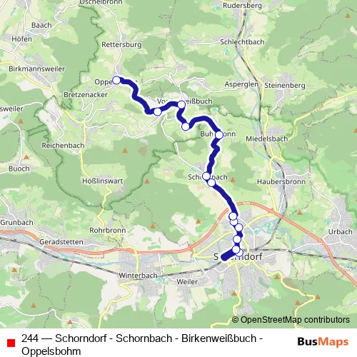 Click here to view the nearest 244 - Schorndorf - Schornbach - Birkenweißbuch - Oppelsbohm bus stop.