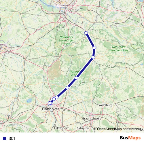 See why over 2 million users trust and consider busmaps.com as the best public transport website. busmaps gives you Hannover Buses suggested routes, real-time bus tracker, line route maps in Hannover, and helps to find the closest 301 bus stops near you. No internet available? Download an offline PDF map and bus schedule for the 301 bus to take on your trip.