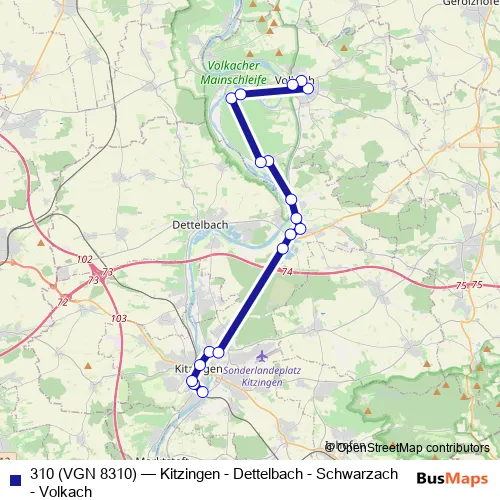 Click here to view the nearest 310 (VGN 8310) - Kitzingen - Dettelbach - Schwarzach - Volkach bus stop.