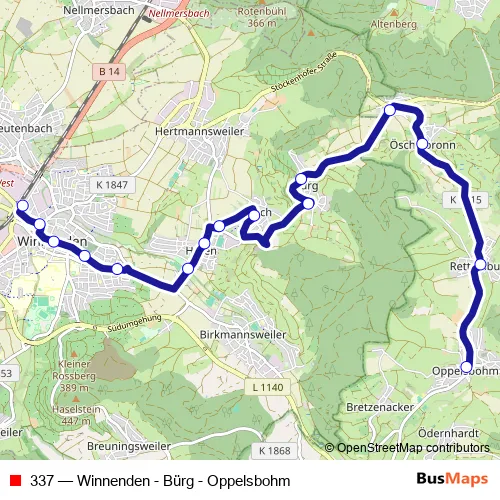 Click here to view the nearest 337 - Winnenden - Bürg - Oppelsbohm bus stop.