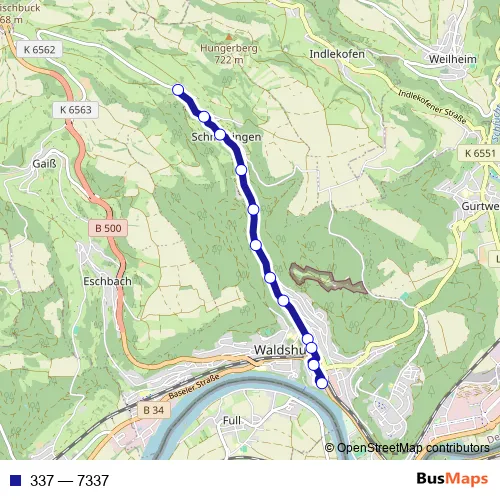 See why over 2 million users trust and consider busmaps.com as the best public transport website. busmaps gives you Waldshut-Tiengen Buses suggested routes, real-time bus tracker, line route maps in Waldshut-Tiengen, and helps to find the closest 337 bus stops near you. No internet available? Download an offline PDF map and bus schedule for the 337 bus to take on your trip.