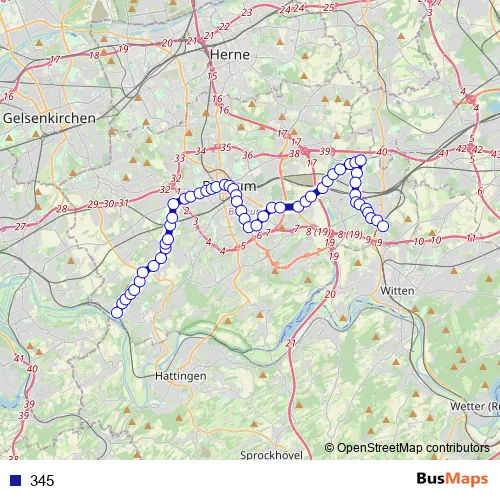 See why over 2 million users trust and consider busmaps.com as the best public transport website. busmaps gives you Bochum Buses suggested routes, real-time bus tracker, line route maps in Bochum, and helps to find the closest 345 bus stops near you. No internet available? Download an offline PDF map and bus schedule for the 345 bus to take on your trip.