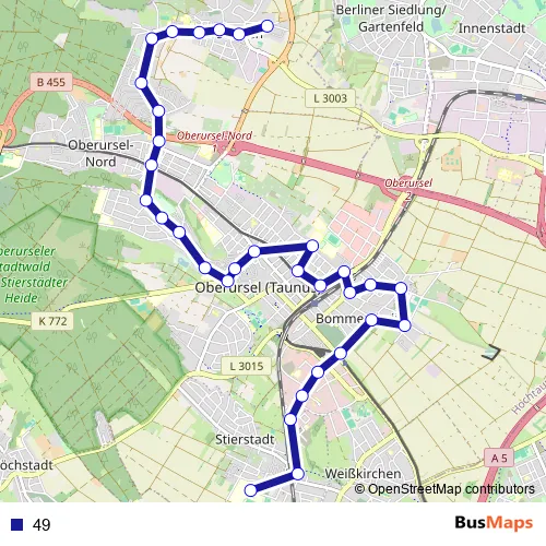 See why over 2 million users trust and consider busmaps.com as the best public transport website. busmaps gives you Bad Homburg vor der Hoehe Buses suggested routes, real-time bus tracker, line route maps in Bad Homburg vor der Hoehe, and helps to find the closest 49 bus stops near you. No internet available? Download an offline PDF map and bus schedule for the 49 bus to take on your trip.