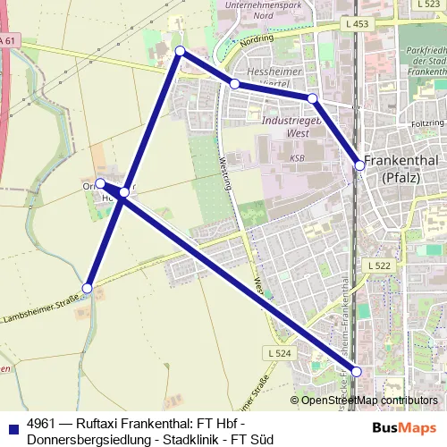 Bus 4961 - Ruftaxi Frankenthal: FT Hbf - Donnersbergsiedlung - Stadklinik - FT Süd Schedule in Frankenthal
