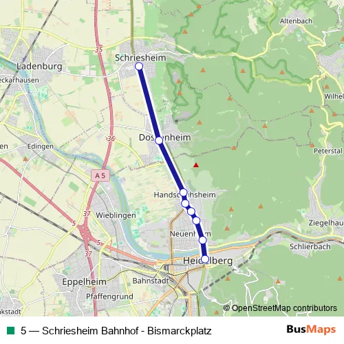 Bus 5 - Schriesheim Bahnhof - Bismarckplatz Schedule in Heidelberg