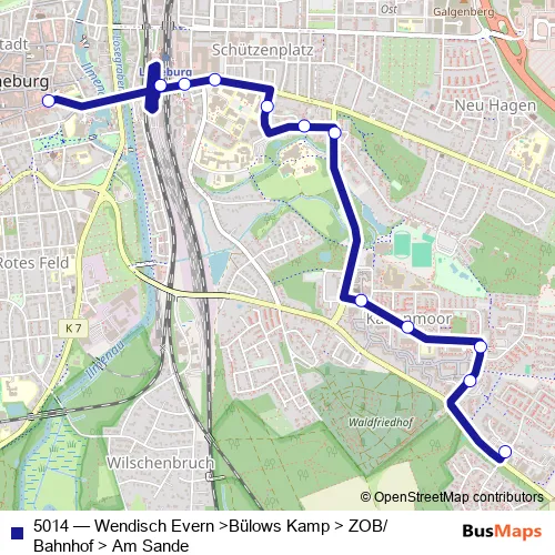 Click here to view the nearest 5014 - Wendisch Evern >Bülows Kamp > ZOB/Bahnhof > Am Sande bus stop.