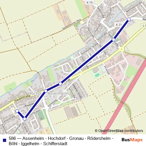 Bus 586 - Assenheim - Hochdorf - Gronau - Rödersheim - Böhl - Iggelheim - Schifferstadt in Hochdorf-Assenheim: Stops & Timetable