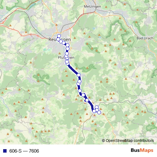 The first stop of the 606-S bus route is Kleinengstingen, Bahnhof and the last stop is Reutlingen, Hbf/Busbahnhof. 606-S (7606) is operational during täglich.