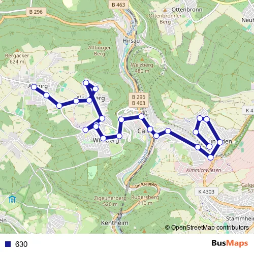 See why over 2 million users trust and consider busmaps.com as the best public transport website. busmaps gives you Calw Buses suggested routes, real-time bus tracker, line route maps in Calw, and helps to find the closest 630 bus stops near you. No internet available? Download an offline PDF map and bus schedule for the 630 bus to take on your trip.