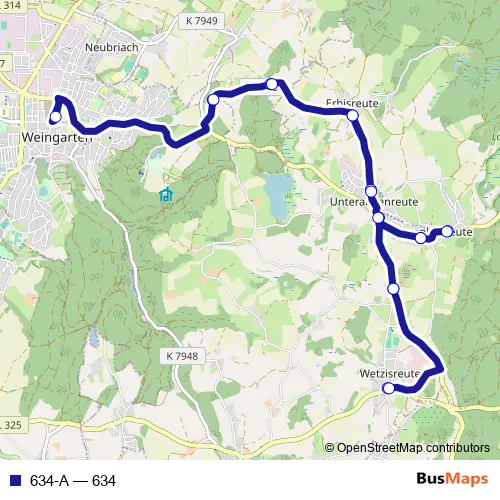 The first stop of the 634-A bus route is Schlier Wetzisreute, Ort and the last stop is Schlier Wetzisreute, Ort. 634-A (634) is operational during täglich.