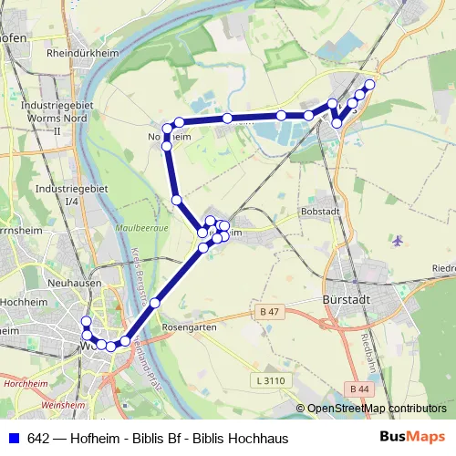 Bus 642 - Hofheim - Biblis Bf - Biblis Hochhaus: Full Schedule in Worms