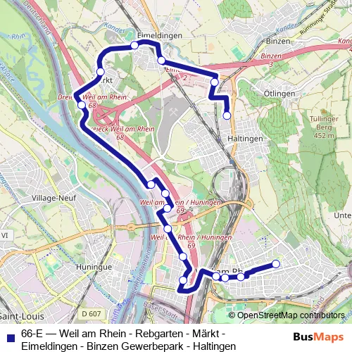 Bus 66-E - Weil am Rhein - Rebgarten - Märkt - Eimeldingen - Binzen Gewerbepark - Haltingen: Full Schedule in Basel