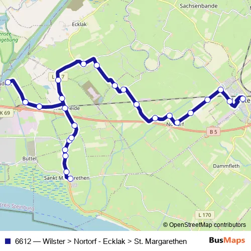 Click here to view the nearest 6612 - Wilster > Nortorf - Ecklak > St. Margarethen bus stop.