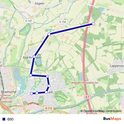 See why over 2 million users trust and consider busmaps.com as the best public transport website. busmaps gives you Bramsche Buses suggested routes, real-time bus tracker, line route maps in Bramsche, and helps to find the closest 680 bus stops near you. No internet available? Download an offline PDF map and bus schedule for the 680 bus to take on your trip.