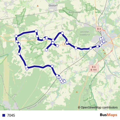 See why over 2 million users trust and consider busmaps.com as the best public transport website. busmaps gives you Uelzen Buses suggested routes, real-time bus tracker, line route maps in Uelzen, and helps to find the closest 7045 bus stops near you. No internet available? Download an offline PDF map and bus schedule for the 7045 bus to take on your trip.