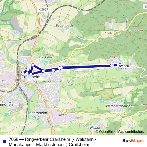 7058 Bus - Ringverkehr Crailsheim (- Waldtann - Mariäkappel - Marktlustenau -) Crailsheim