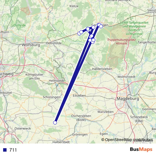 Gardelegen, Bahnhof (Bus). 711 is operational during an Werktagen.