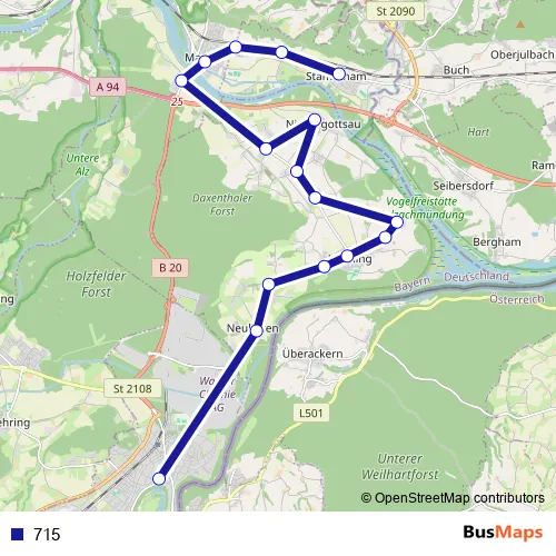The first stop of the 715 bus route is Stammham Schulstr. and the last stop is