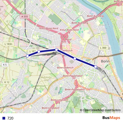 See why over 2 million users trust and consider busmaps.com as the best public transport website. busmaps gives you Bonn Buses suggested routes, real-time bus tracker, line route maps in Bonn, and helps to find the closest 720 bus stops near you. No internet available? Download an offline PDF map and bus schedule for the 720 bus to take on your trip.