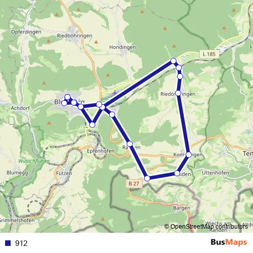 Achdorfer Straße - Hauptstraße - Leo-Wohleb-Straße - Hauptstraße - Bahnhofstraße - Höhenstraße - Zollstraße - Neuhauser Straße - Alpenstraße - Geltengasse - Otto-Efferenn-Straße - Am Bahnhof - Süßer Winkel - Bahnhofstraße - Vogelherd - Leo-Wohleb-Straße - Hauptstraße - Achdorfer Straße