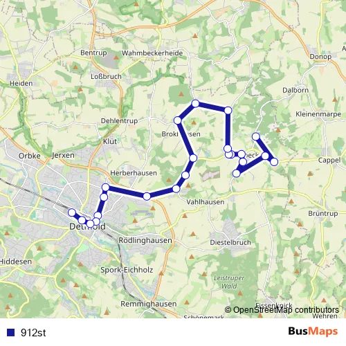 See why over 2 million users trust and consider busmaps.com as the best public transport website. busmaps gives you Detmold Buses suggested routes, real-time bus tracker, line route maps in Detmold, and helps to find the closest 912st bus stops near you. No internet available? Download an offline PDF map and bus schedule for the 912st bus to take on your trip.