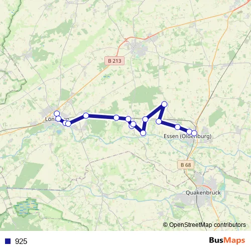 The first stop of the 925 bus route is Löningen Schulzentrum/Linderner Straße and the last stop is Essen(Oldb) Bahnhof. 925 is operational during täglich.