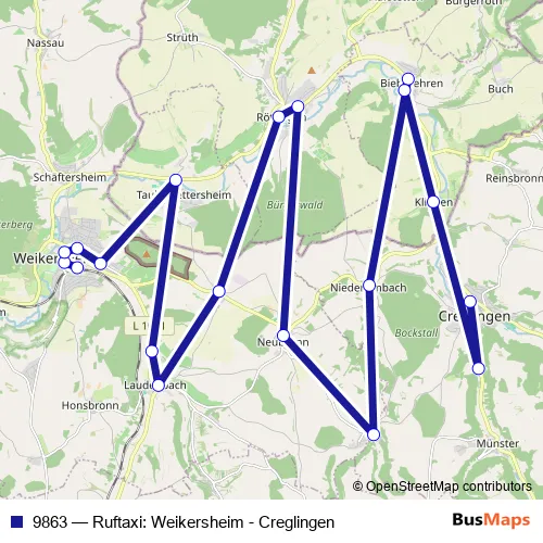Click here to view the nearest 9863 - Ruftaxi: Weikersheim - Creglingen bus stop.