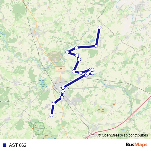 See why over 2 million users trust and consider busmaps.com as the best public transport website. busmaps gives you Heeslingen Buses suggested routes, real-time bus tracker, line route maps in Heeslingen, and helps to find the closest AST 862 bus stops near you. No internet available? Download an offline PDF map and bus schedule for the AST 862 bus to take on your trip.