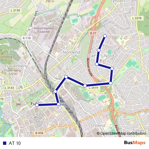 See why over 2 million users trust and consider busmaps.com as the best public transport website. busmaps gives you Fulda Buses suggested routes, real-time bus tracker, line route maps in Fulda, and helps to find the closest AT 10 bus stops near you. No internet available? Download an offline PDF map and bus schedule for the AT 10 bus to take on your trip.