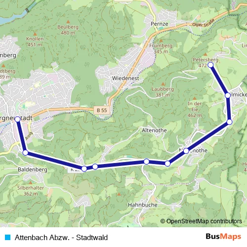 See why over 2 million users trust and consider busmaps.com as the best public transport website. busmaps gives you Gummersbach Trams suggested routes, real-time bus tracker, line route maps in Gummersbach, and helps to find the closest Attenbach Abzw. - Stadtwald tram stops near you. No internet available? Download an offline PDF map and bus schedule for the Attenbach Abzw. - Stadtwald tram to take on your trip.