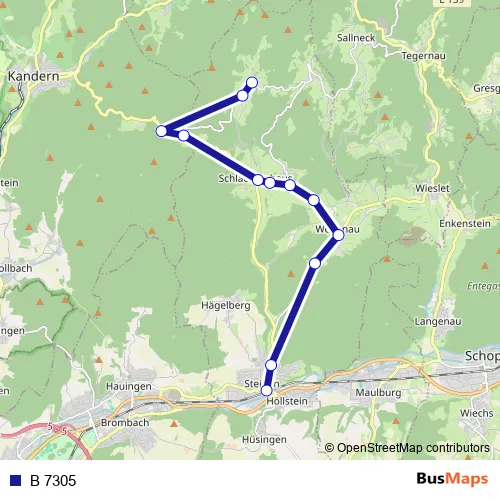 Eisenbahnstraße - Kanderner Straße - Talstraße - Scheideckstraße - Krämelweg - Austraße - Oberer Schlangengrabenweg - Staltenweg - Mühlematten