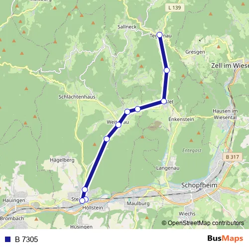 Bus B 7305 : Full Schedule in Basel