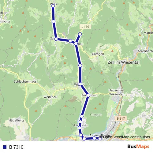 Hinfahrt: Schopfheim, Busbahnhof – Wies (Schwarzw)