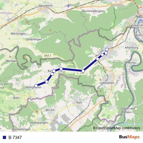 Hinfahrt: Jestetten, Bahnhof – Dettighofen (D), Rathaus