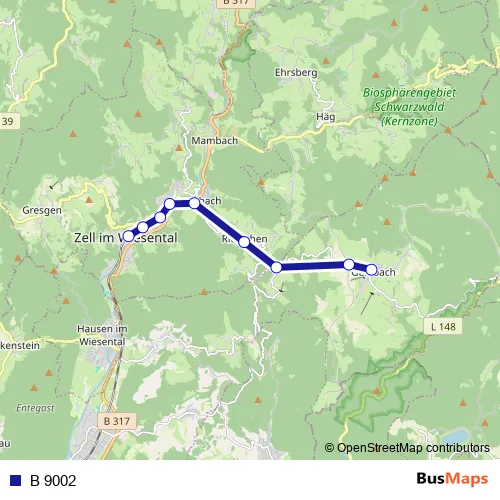 See why over 2 million users trust and consider busmaps.com as the best public transport website. busmaps gives you Zell im Wiesental Buses suggested routes, real-time bus tracker, line route maps in Zell im Wiesental, and helps to find the closest B 9002 bus stops near you. No internet available? Download an offline PDF map and bus schedule for the B 9002 bus to take on your trip.
