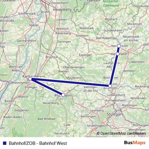 Pforzheim Zob – Neckarsulm, Bahnhof West