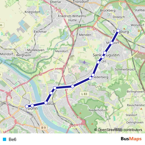 See why over 2 million users trust and consider busmaps.com as the best public transport website. busmaps gives you Siegburg Trams suggested routes, real-time bus tracker, line route maps in Siegburg, and helps to find the closest Be6 tram stops near you. No internet available? Download an offline PDF map and bus schedule for the Be6 tram to take on your trip.
