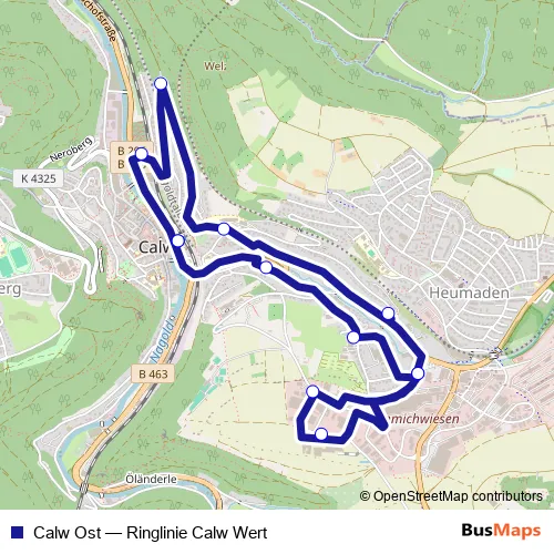 Click here to view the nearest Calw Ost - Ringlinie Calw Wert bus stop.