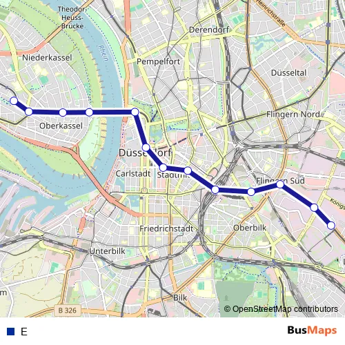 See why over 2 million users trust and consider busmaps.com as the best public transport website. busmaps gives you Duesseldorf Metro Lines suggested routes, real-time bus tracker, line route maps in Duesseldorf, and helps to find the closest E metro stops near you. No internet available? Download an offline PDF map and bus schedule for the E metro to take on your trip.