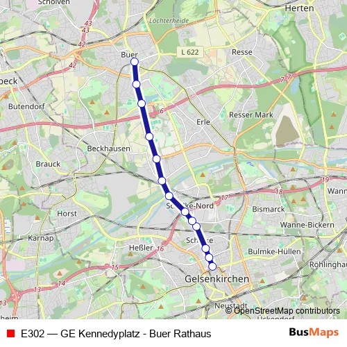 Click here to view the nearest E302 - GE Kennedyplatz - Buer Rathaus bus stop.