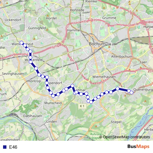 See why over 2 million users trust and consider busmaps.com as the best public transport website. busmaps gives you Bochum Buses suggested routes, real-time bus tracker, line route maps in Bochum, and helps to find the closest E46 bus stops near you. No internet available? Download an offline PDF map and bus schedule for the E46 bus to take on your trip.