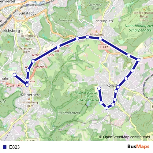 See why over 2 million users trust and consider busmaps.com as the best public transport website. busmaps gives you Wuppertal Buses suggested routes, real-time bus tracker, line route maps in Wuppertal, and helps to find the closest E823 bus stops near you. No internet available? Download an offline PDF map and bus schedule for the E823 bus to take on your trip.