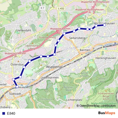 See why over 2 million users trust and consider busmaps.com as the best public transport website. busmaps gives you Wuppertal Buses suggested routes, real-time bus tracker, line route maps in Wuppertal, and helps to find the closest E840 bus stops near you. No internet available? Download an offline PDF map and bus schedule for the E840 bus to take on your trip.
