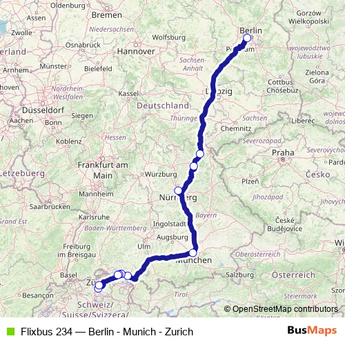 Bus Flixbus 234 - Berlin - Munich - Zurich: Full Schedule in Kreuzlingen